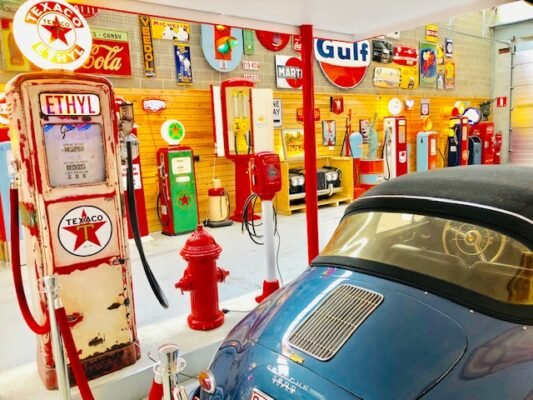 We also own unique old pieces, vintage furniture, gas pumps, Coke vending machine, jukebox ….
